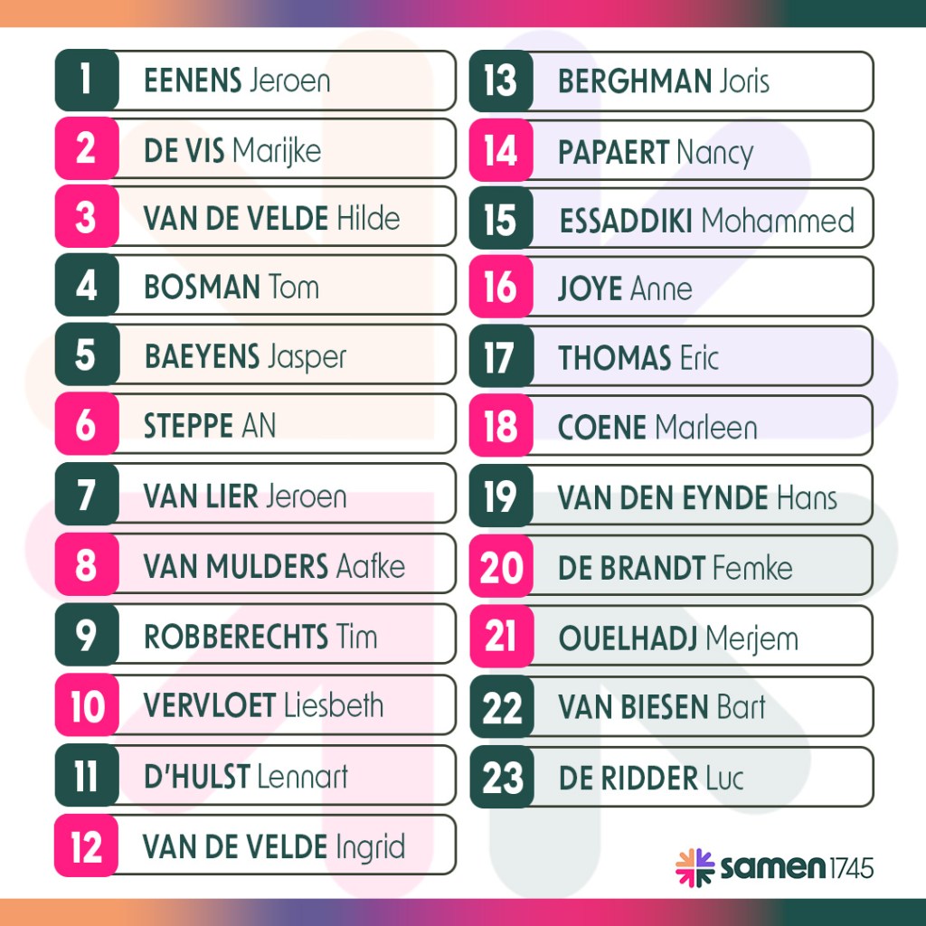 Met nog iets minder dan 4 maanden te gaan tot de gemeenteraadsverkiezingen, stelt de nieuwe en open lijst samen1745 als eerste haar volledige kandidatenlijst voor.
