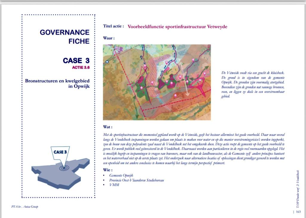Het actieplan werd opgedeeld in een aantal deelgebieden en werven waaronder de studieopdracht voor de Vondelbeekvallei, gelegen op het grondgebied van de gemeenten Dendermonde, Lebbeke en Opwijk.